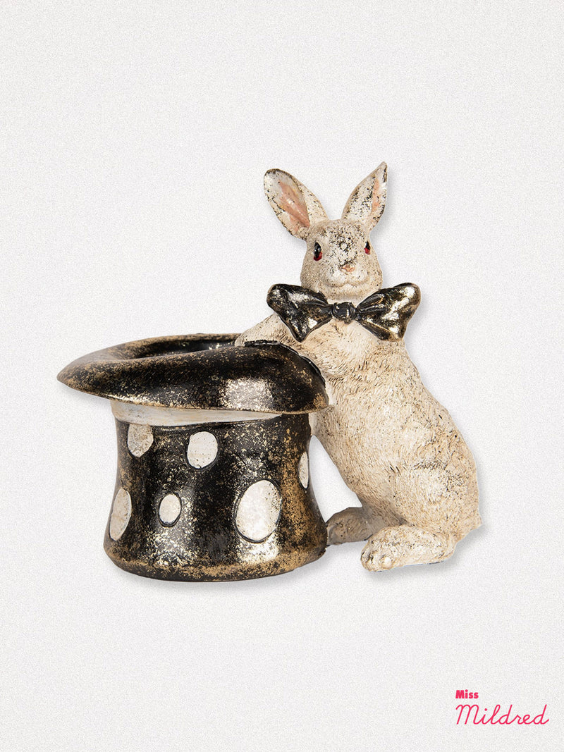 White Rabbit with Hat Figurine