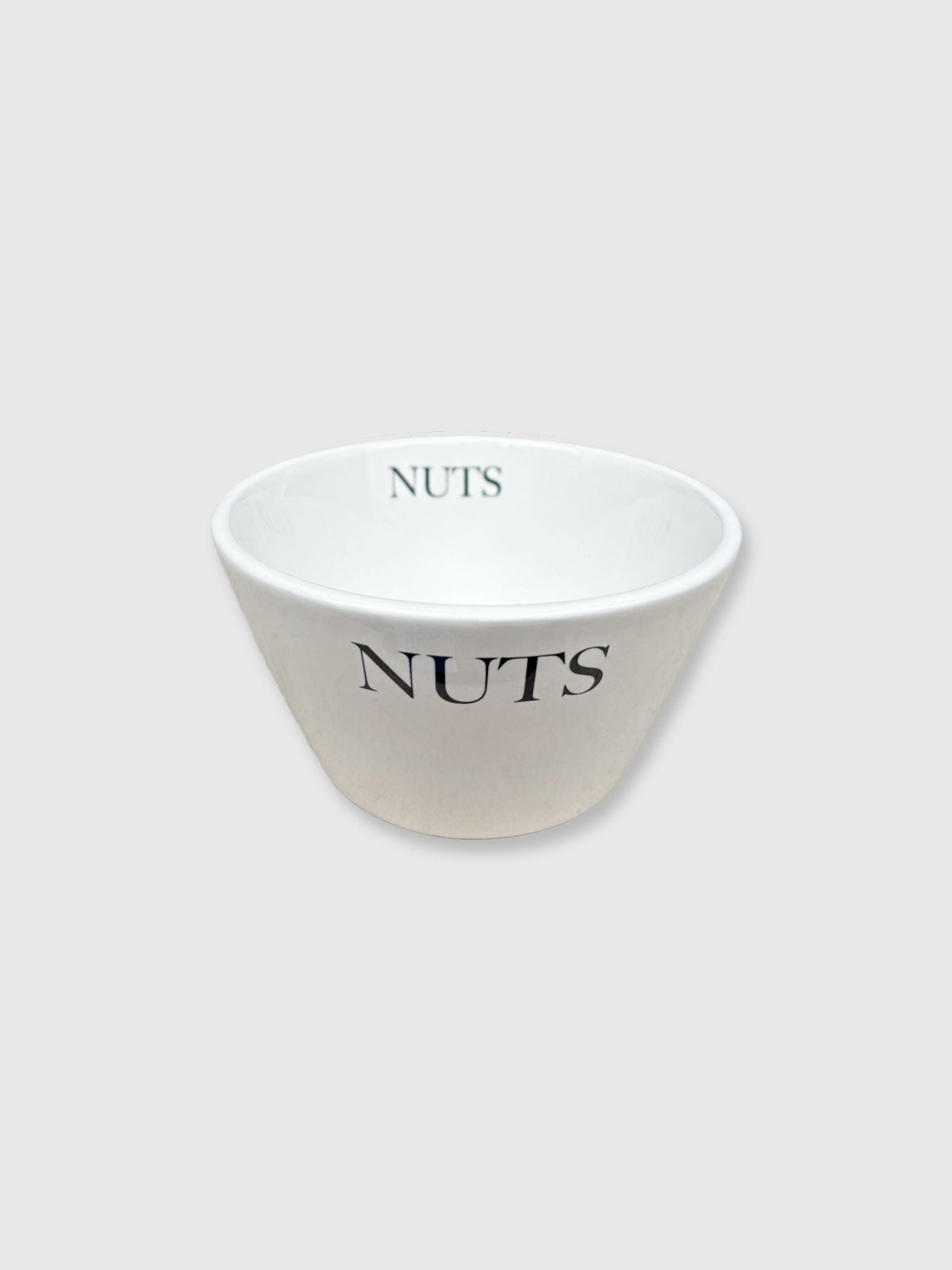 White ceramic bowl that's just the right size for a variety of different snacks. Also comes in other slogans.