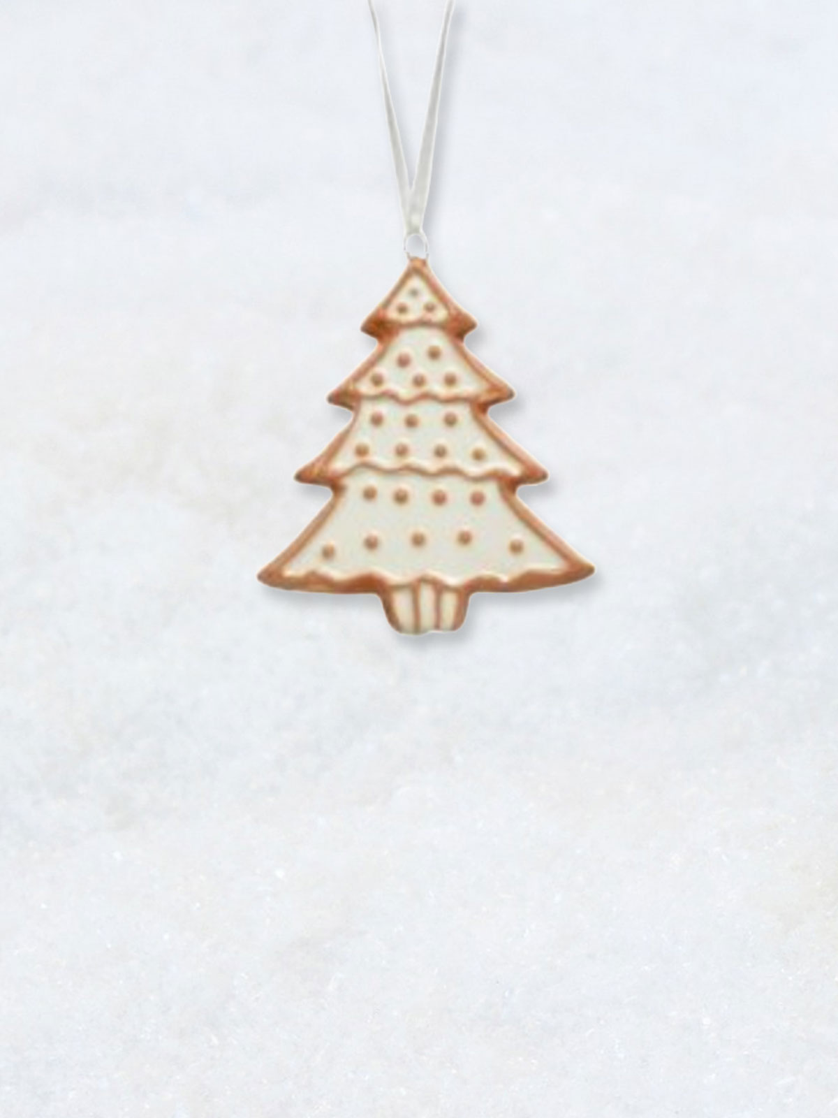 A delicious looking ceramic based cookie hanging decoration with added icing decals.