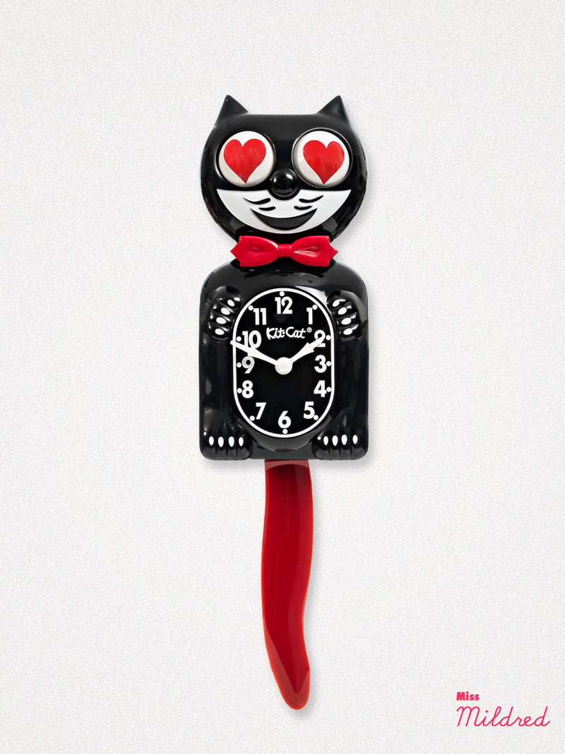 Kit Cat Clock Love Heart Eyes - Original Large Size - Black Red