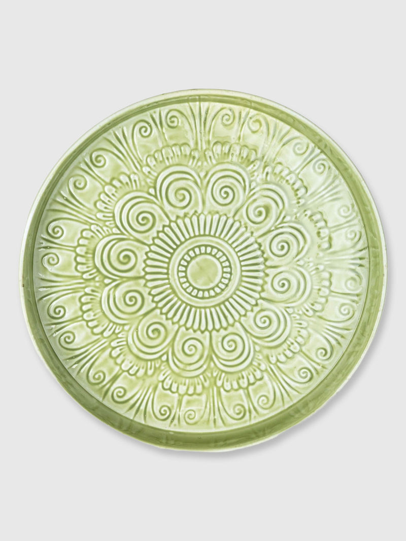Round Metal Textured Enamel Tray - Green