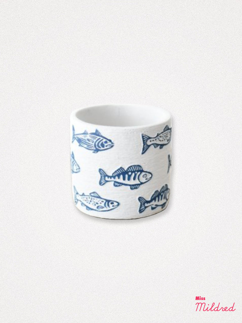 Blue and White Fish Ceramic Plant Pot - 14cm
