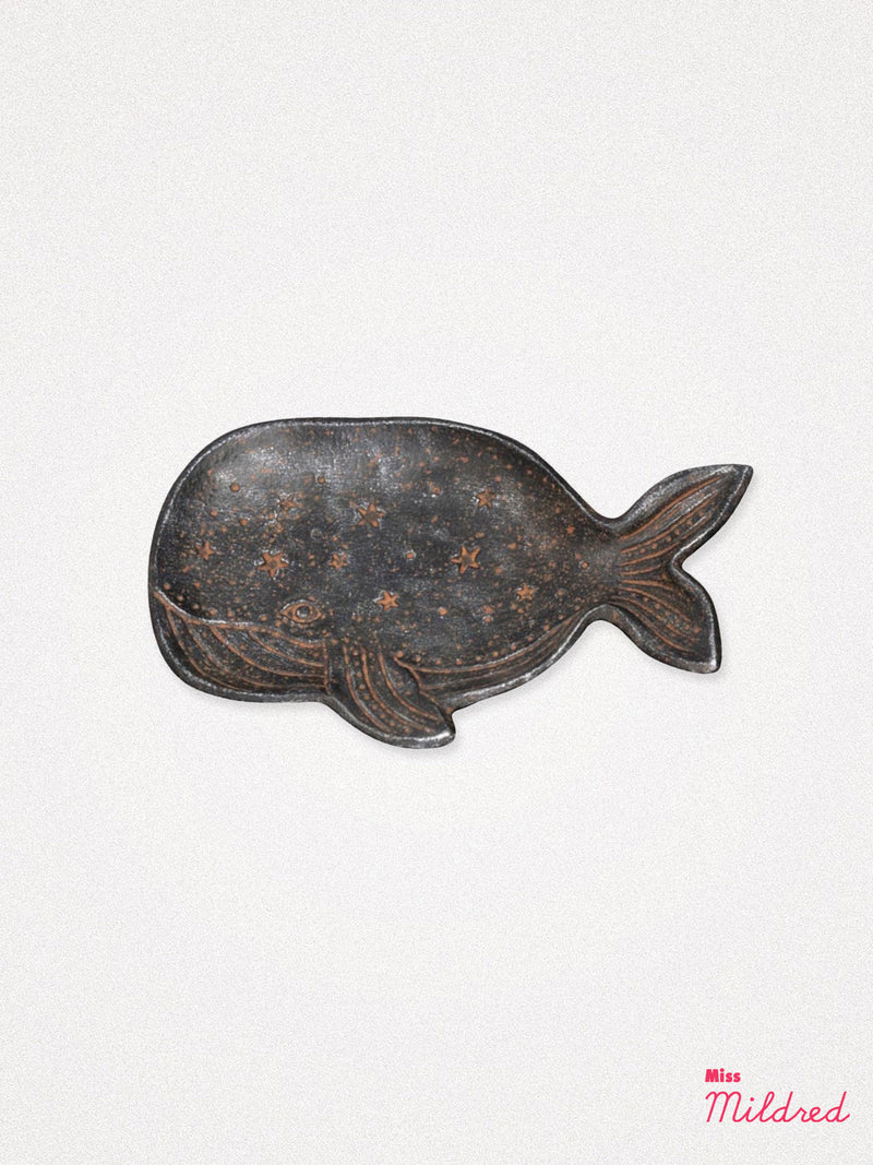 Cast Iron Metal Whale with Stars Trinket Dish