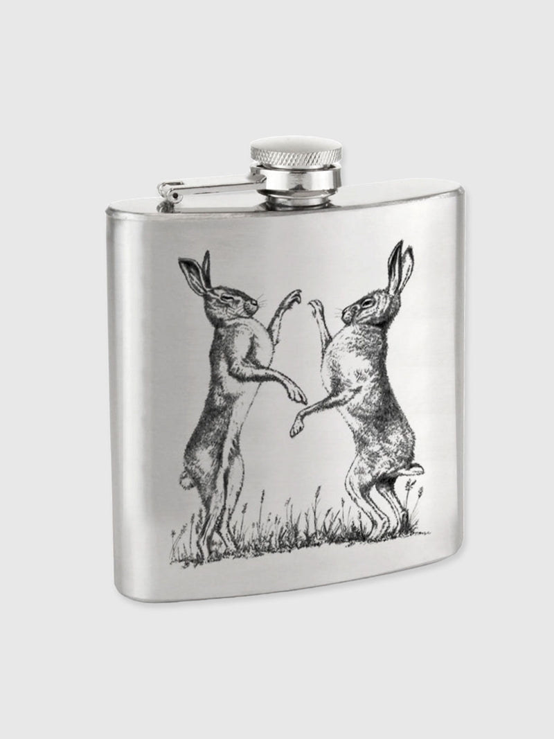 Stainless Steel Hip Flask - Boxing Hares