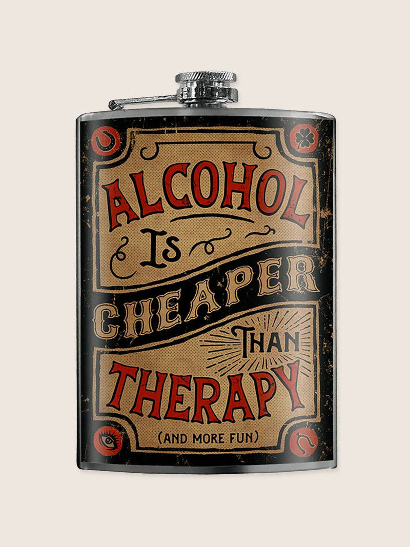 Stainless Steel Hip Flask - Alcohol Is Cheaper Than Therapy