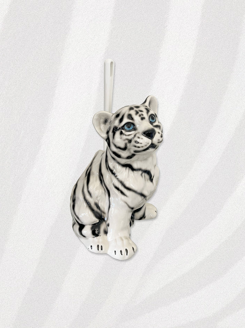 Italian Porcelain White Tiger Cub Toilet Brush
