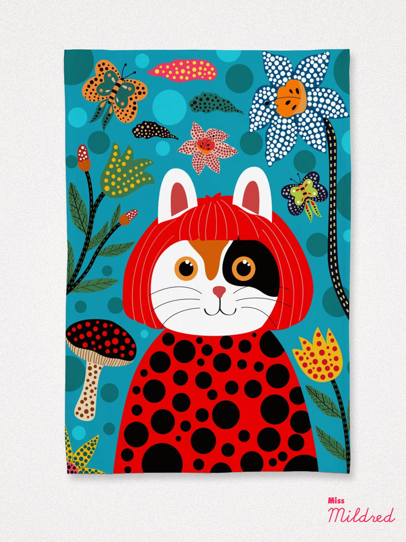 Calico Cat Yayoi Kusama - Cotton Tea Towel
