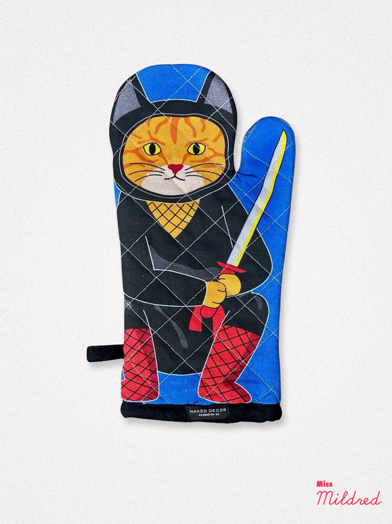 Japanese Orange Tabby Kitty Cat Ninja - Oven Mitt