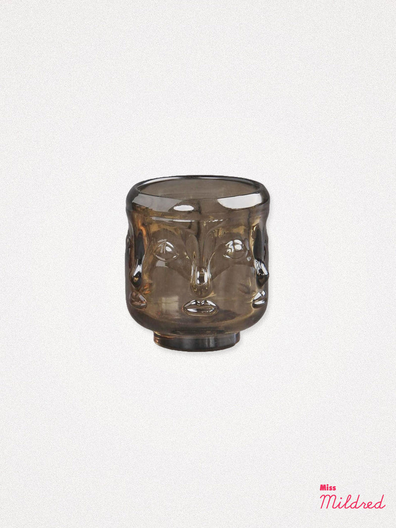 Multi Face Glass Candle Holder Amber - 7.3cm