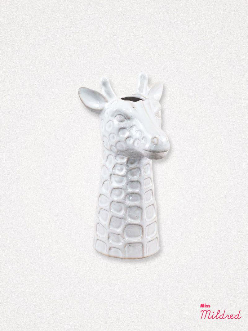 Giraffe Head Shaped White Ceramic Vase - 17cm