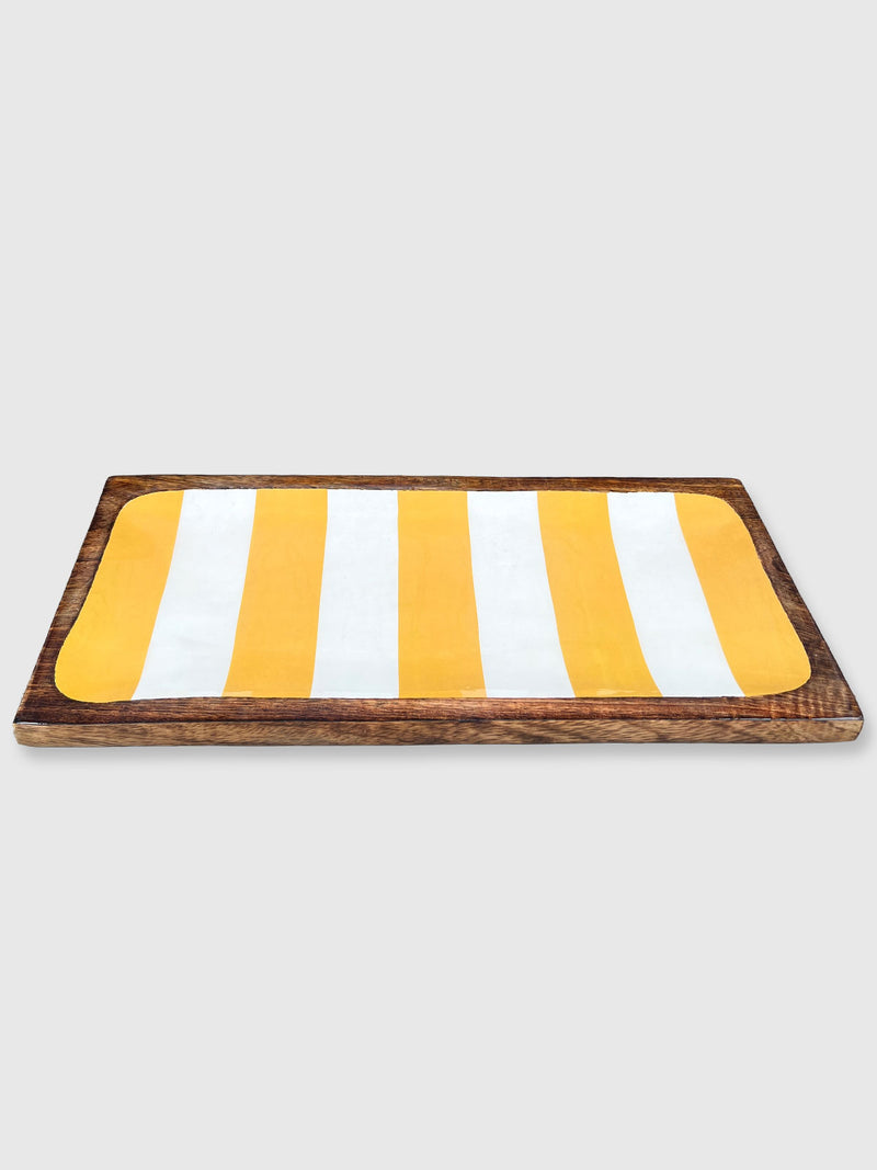 Cabana Yellow Striped Wooden Platter Tray - 40cm