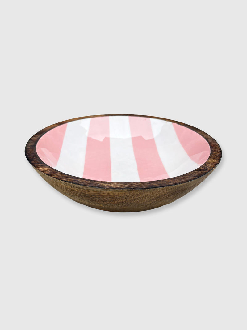 Wooden Pink Striped Enamelled Bowl - 25cm