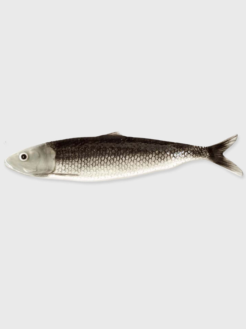 Ceramic Hand-Painted Sardine Shaped Plate - Grey