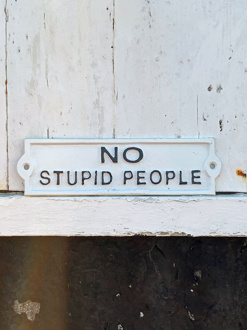 No Stupid People - Cast Iron Sign