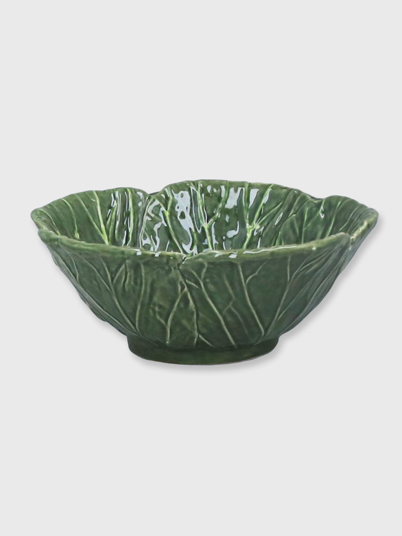 Green Cabbage Leaf Stoneware Bowl - Medium