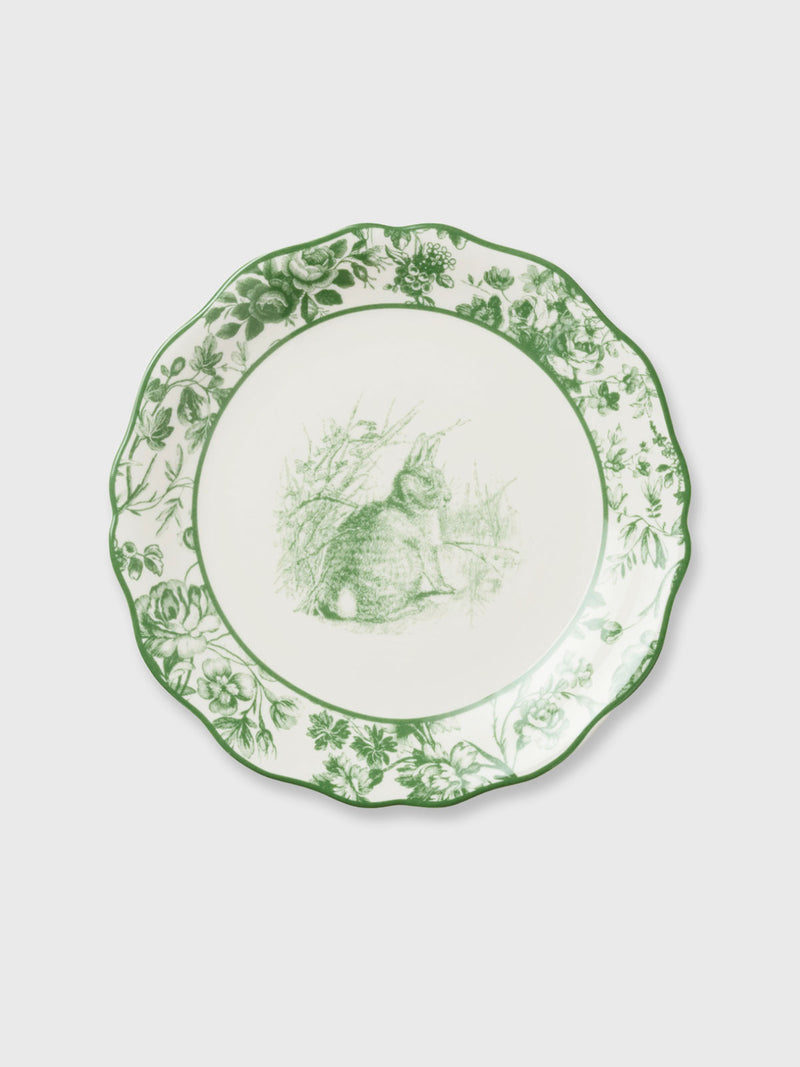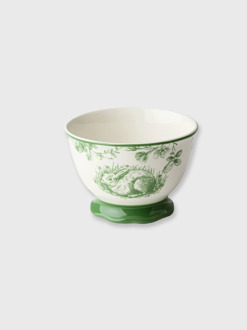White & Green 'Running' Rabbit Garden Soup Bowl