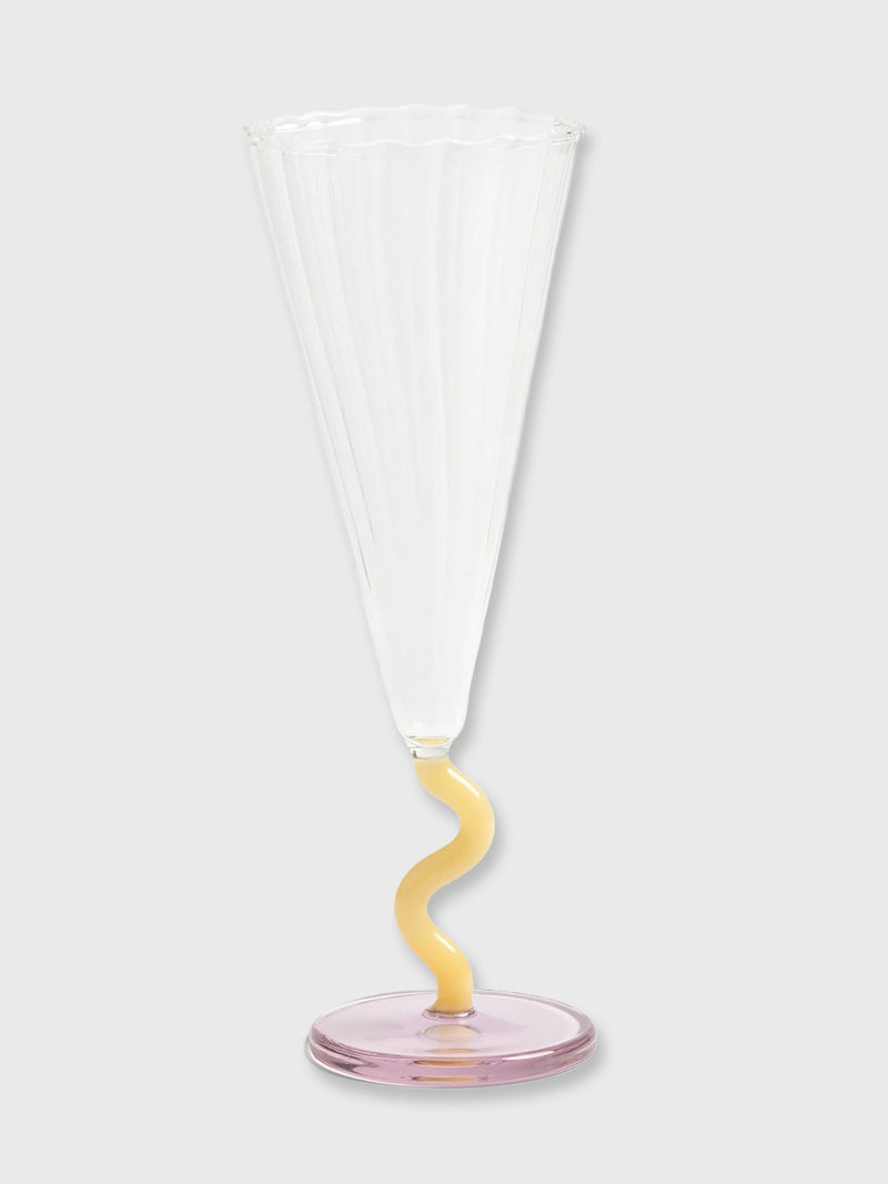 Klevering Flute Glass with Yellow Curve Stem