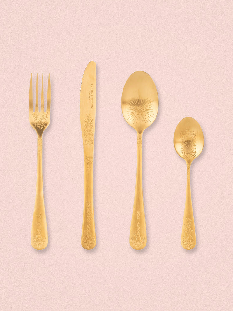 Yvonne Ellen Gold Slogan Cutlery Set - 16 pieces
