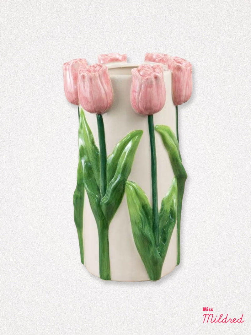 Tulip Design Ceramic Vase - Pink