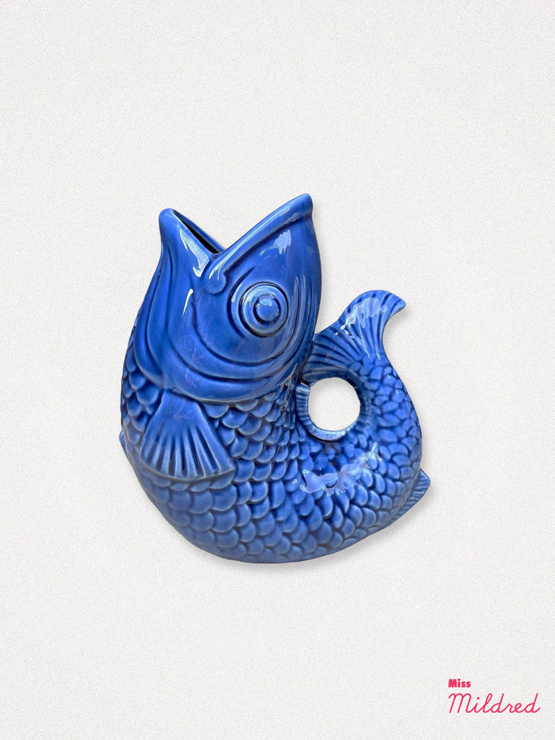 Ceramic Fish Jug Vase - Navy Blue