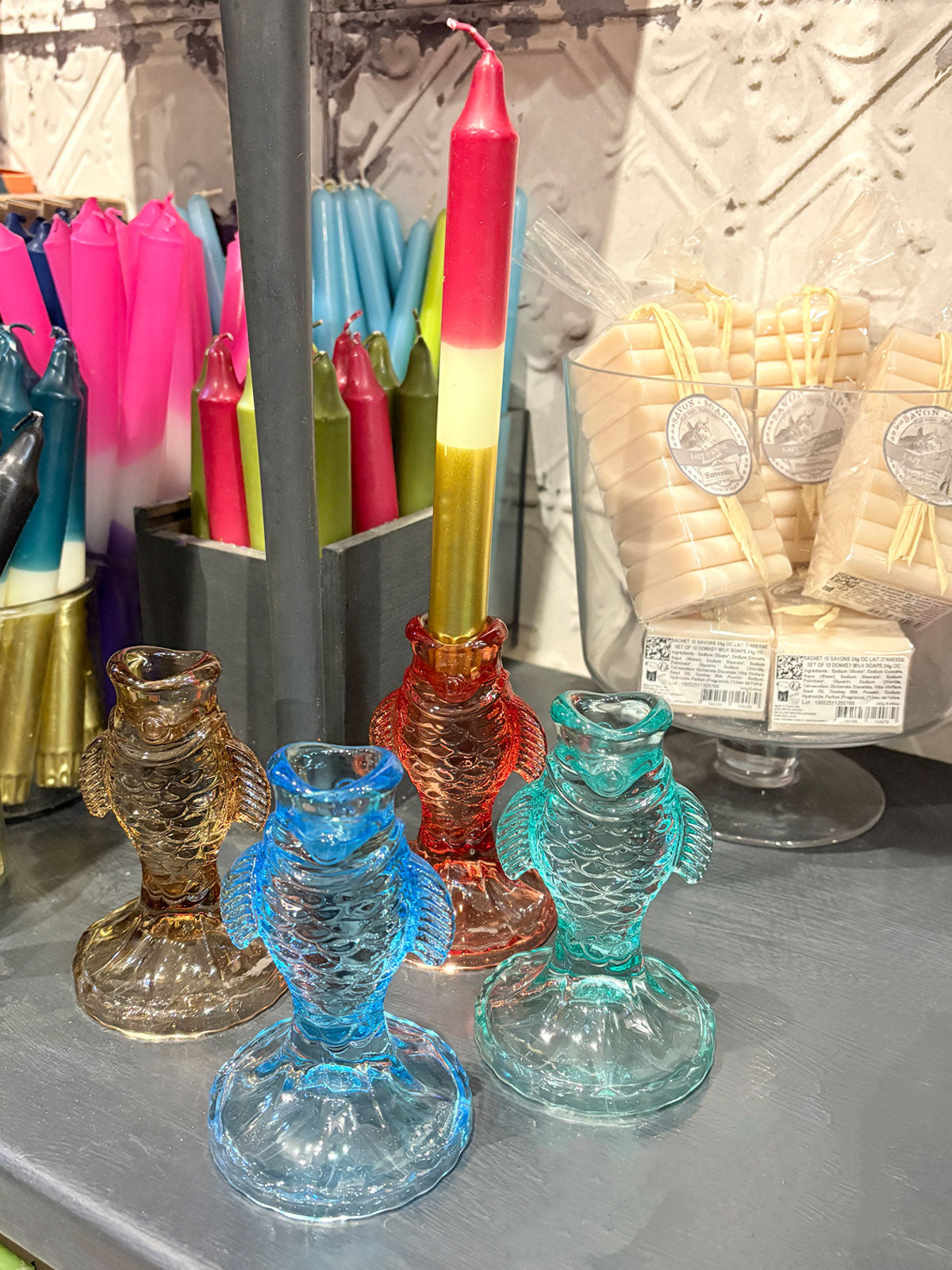 Fish Shape Glass Candle Holder - Green